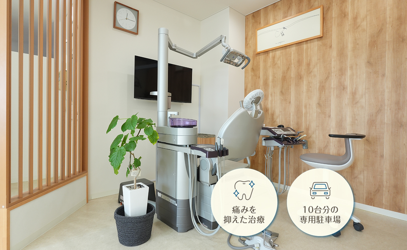 豊栄駅から徒歩5分、駐車場も10台分完備しています。小さなお子さまからシニアの方まで通いやすい環境を整えていますので、お口のことでお悩みがございましたらぜひお気軽にご来院ください。